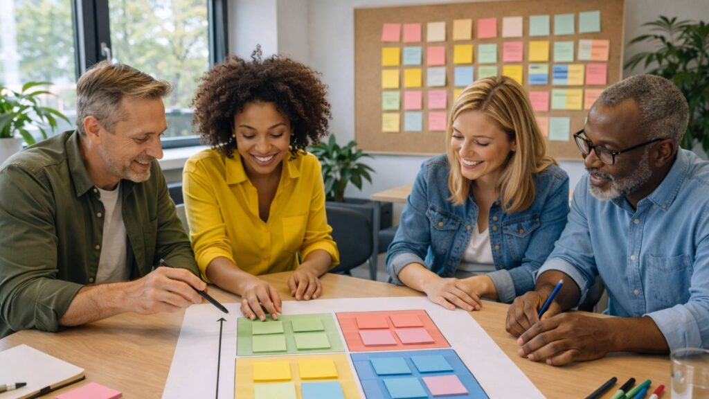 Unklare oder zu ähnliche Kriterien nehmen der Methode sofort die Schärfe. Zu schnelles Einsortieren führt dazu, dass eher geraten als entschieden wird. Häufig entsteht zudem ein leiser Druck zur Einigkeit – Punkte landen in der Mitte, um keinen Widerspruch auszulösen. Die Matrix wirkt dann ordentlich, aber bleibt inhaltlich flach.