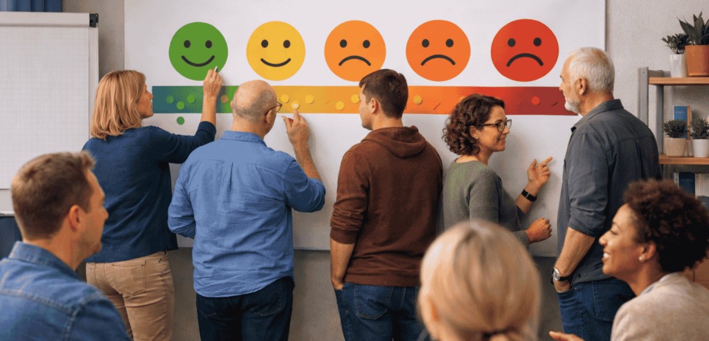 Trainer:innen- oder Kursleiterfortbildung: Hier eignet sich die Methode gut, um zu zeigen, wie man Gruppenstimmung wahrnimmt und darauf reagiert.