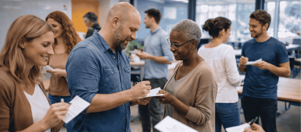 Wenn du eine Gruppe schnell und unkompliziert in Kontakt bringen willst, ist der Autogrammjäger ein robustes Einstiegsformat. Mit gut gewählten Aussagen entsteht in kurzer Zeit spürbar mehr Bewegung und Verbindung im Raum.