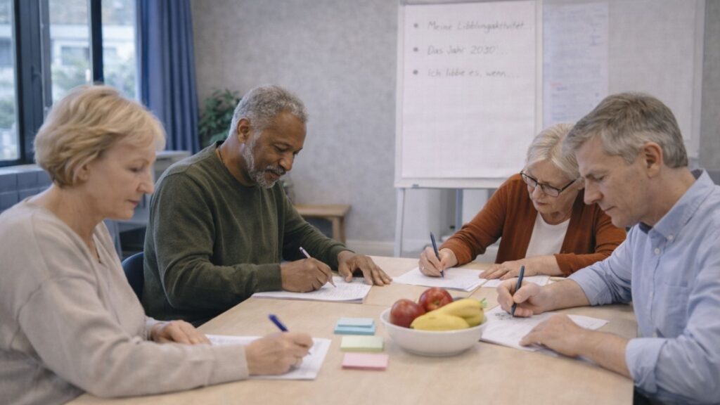 DaF/DaZ: Teilnehmende schreiben frei zu einem Alltagsthema, um Sprachproduktion ohne Korrekturdruck zu aktivieren