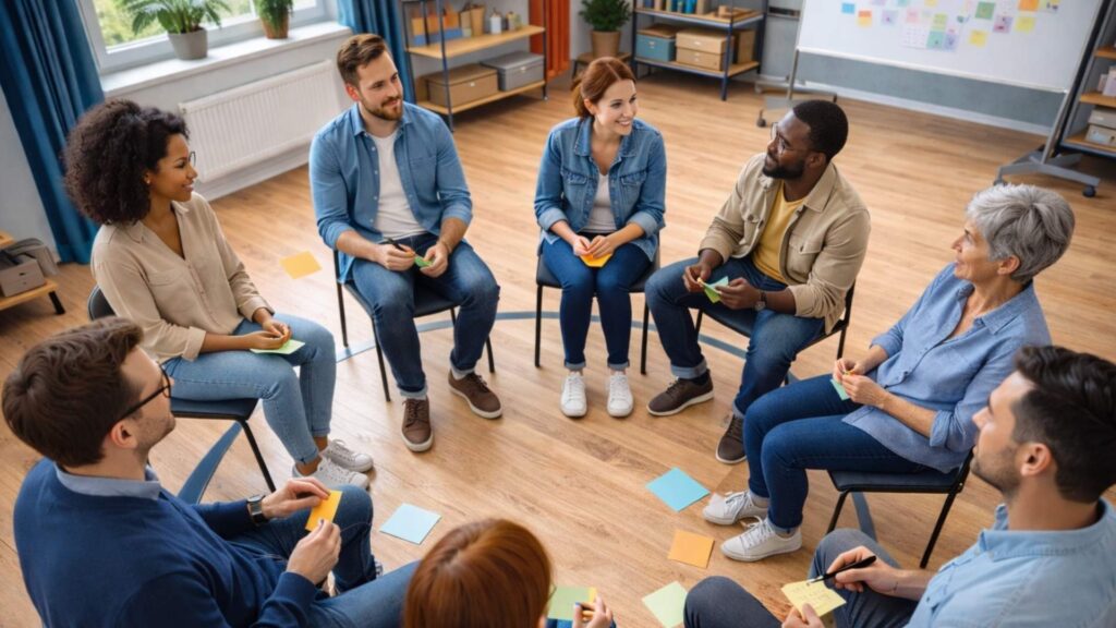 Ein zentraler Hebel ist die Aktivierung aller. Klassisch beteiligen sich immer die gleichen Personen. Das lässt sich durch kurze Vorphasen vermeiden, in denen alle ihre Gedanken klären, oder durch gezielte Ansprache einzelner Perspektiven. So wird die Diskussion breiter und tragfähiger. Didaktisch wirksam ist außerdem die Sichtbarmachung von Inhalten. Wenn zentrale Begriffe, Positionen oder Argumente festgehalten werden, entsteht Struktur im Gespräch. Das verhindert Wiederholungen und hilft, Entwicklungen nachzuvollziehen.